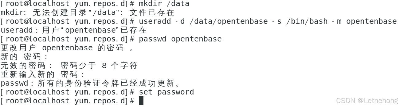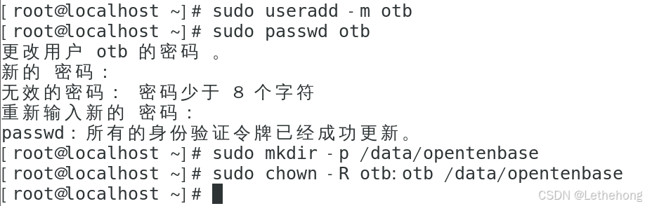 mkdir /data useradd-d /data/opentenbase -s /bin/bash -m opentenbase passwd opentenbase # set password