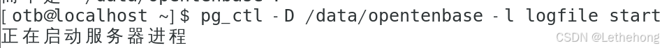 # 启动数据库 pg_ctl -D /data/opentenbase -l logfile start # 停止数据库 pg_ctl -D /data/opentenbase stop # 重启数据库 pg_ctl -D /data/opentenbase restart