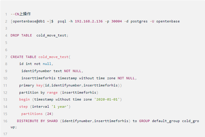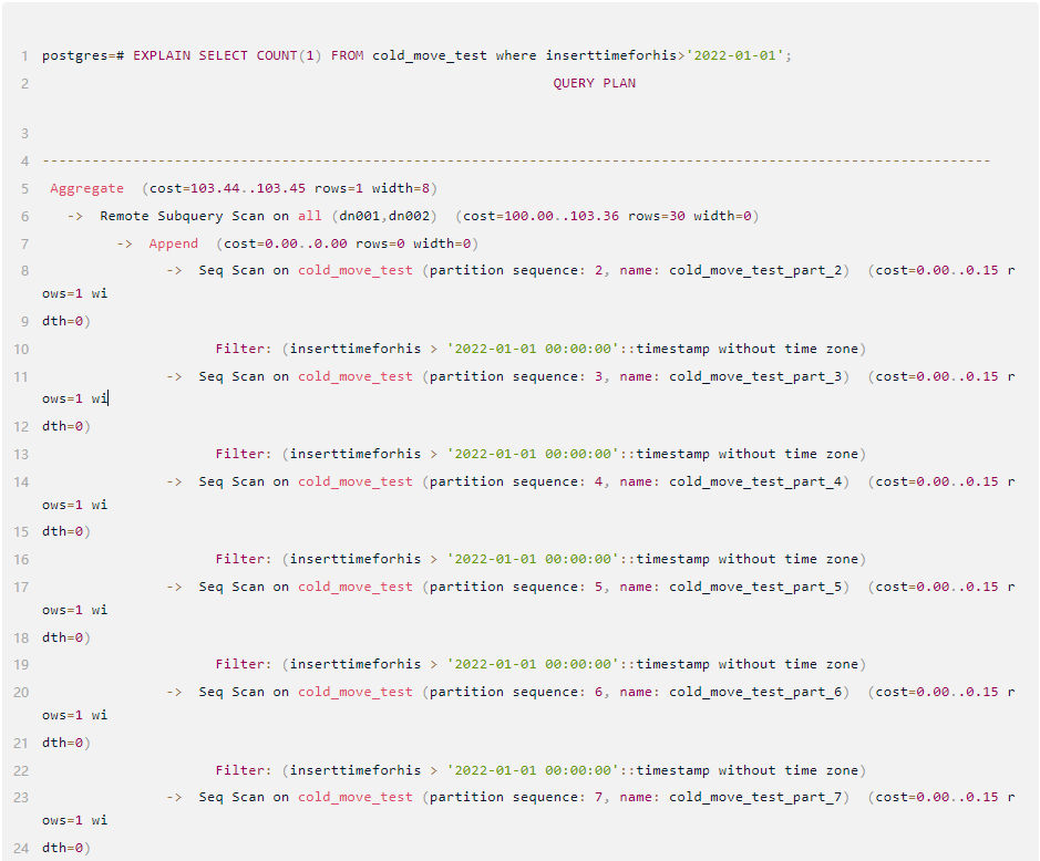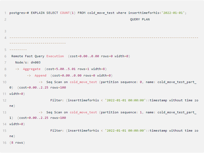 可以看到执行计划访问的dn003是冷数据所在的cold_group组。