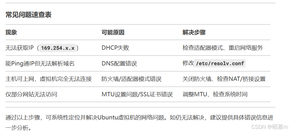 若问题依旧,可能是虚拟机镜像损坏,建议新建虚拟机测试网络。