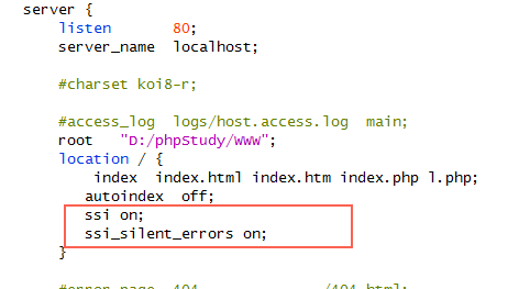 开启ssi支持,默认是offssi_silent_errors on