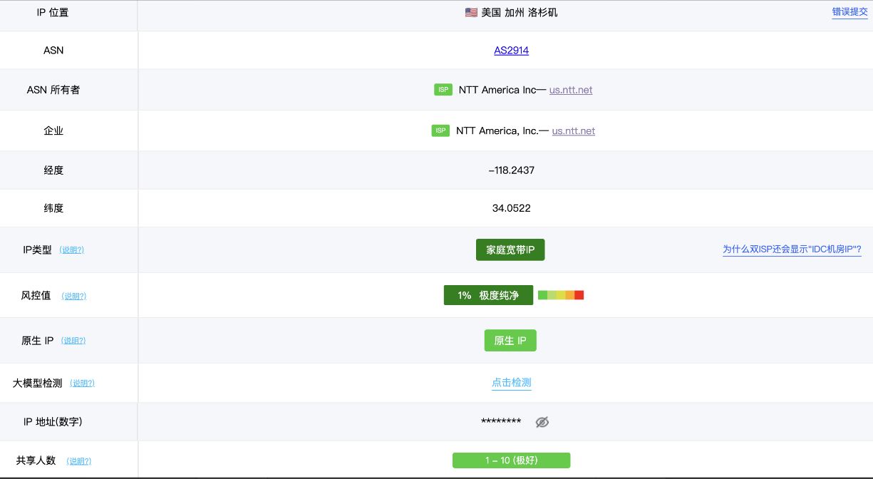 测试IP双ISP属性,ping0测试的纯净度也是非常高的。