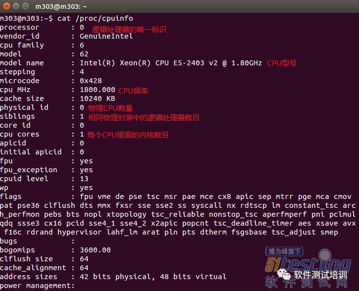 查看详细信息: 执行 cat /proc/cpuinfo,会显示出主机的CPU详细参数,如内核、频率、型号等。