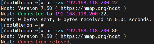nc -zv 192.168.118.200 22 nc -zv 192.168.118.200 80