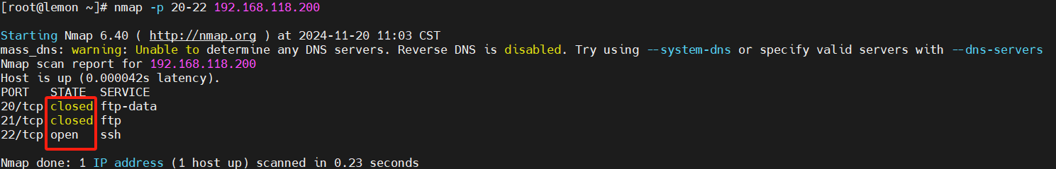 nmap -p 20-22 192.168.118.200
