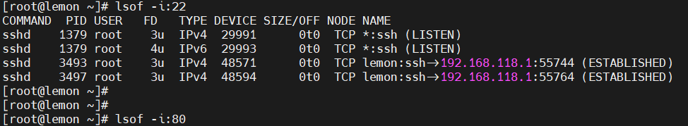 lsof -i:22 lsof -i:80