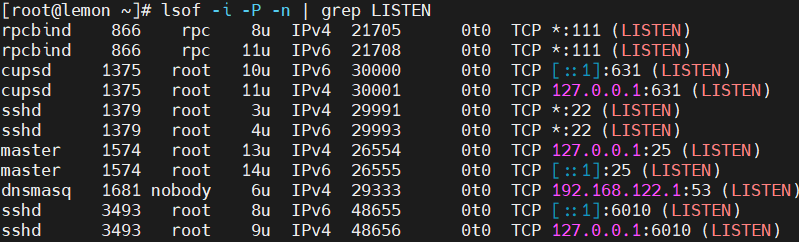 lsof -i -P -n |grep LISTEN