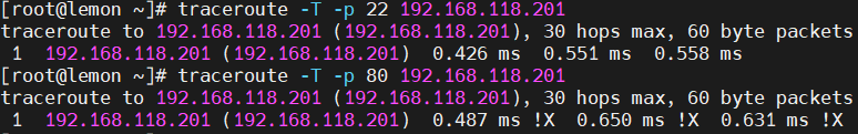 traceroute 192.168.118.201 traceroute -T -p 80 192.168.118.201