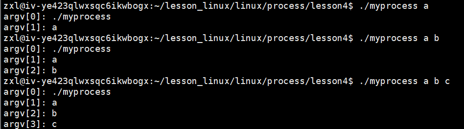我们可以看出来我们的 argv 其实就是把我们命令行以空格为分隔符,把它们一个一个的变成指针数组的样子。