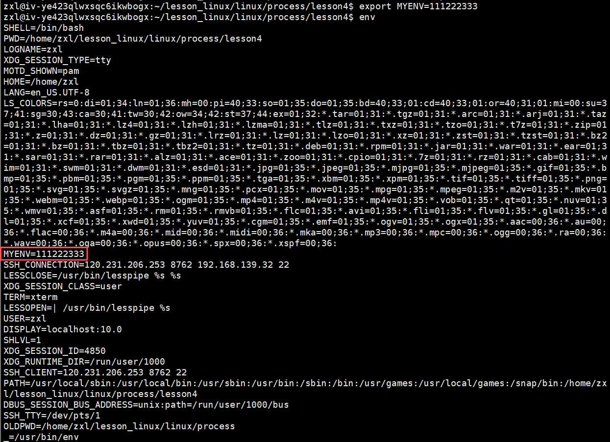 我们获取的这个环境变量是父进程的环境变量,我们用 export 导入环境变量进入 bash 里面,我们的子进程能够看到这些导入的环境变量。