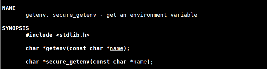 这个函数可以根据环境变量的名字获取环境变量内容。成功了就会获取环境变量的起始地址,否则就返回 NULL。