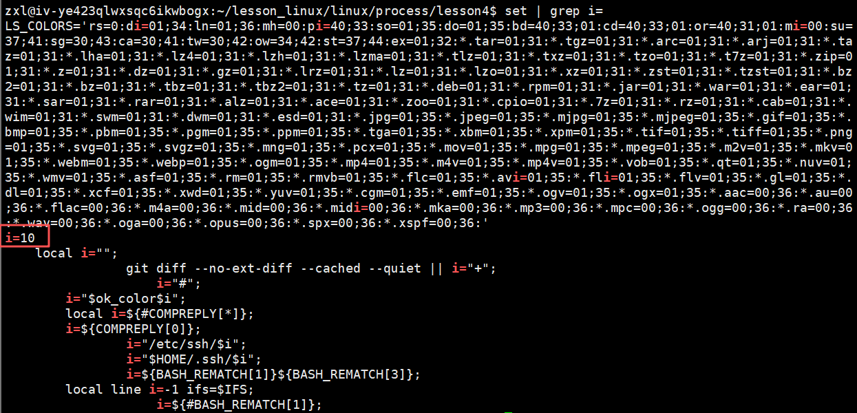我们查看的方式不是 env 了,env 只能看到环境变量,而是使用 set,set 既可以看到环境变量,也可以看到本地变量。