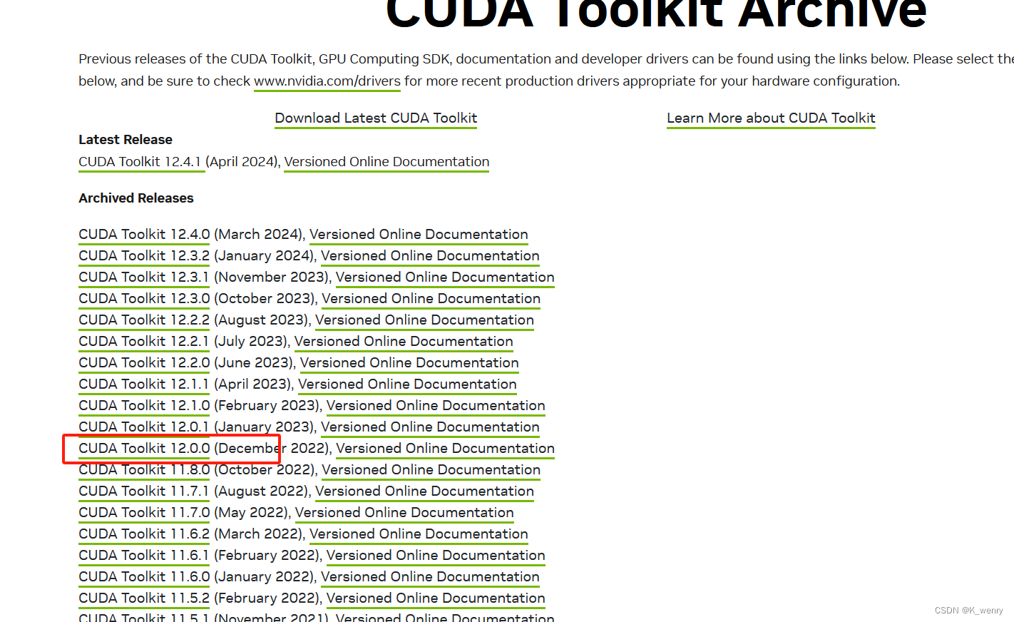 转到CUDA官网:https://developer.nvidia.com/cuda-toolkit-archive