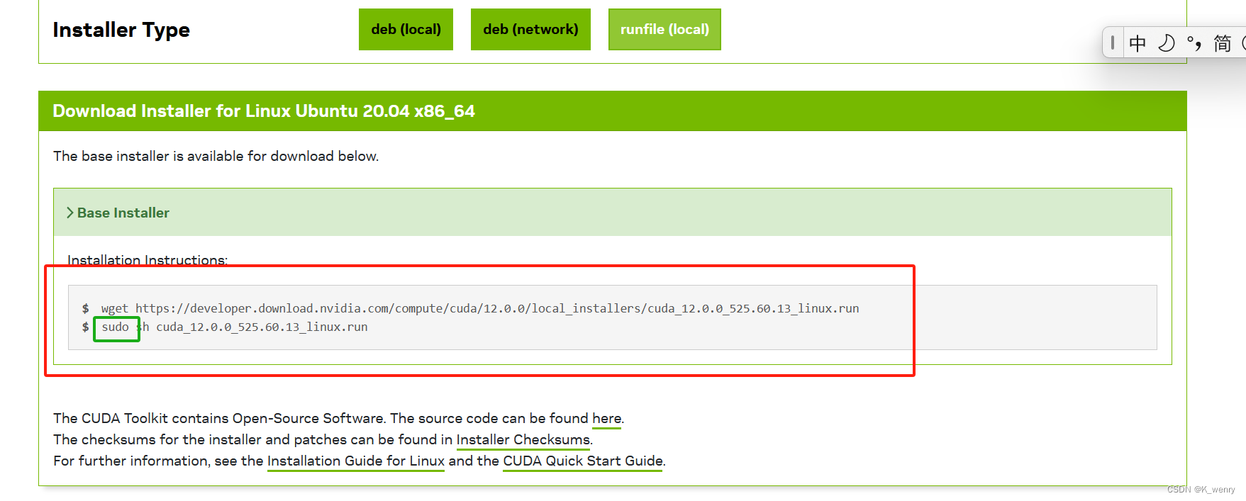 因为没有sudo权限,所以安装类型选择runfile(组里的师兄告诉的)其他的安装方式我也没有尝试