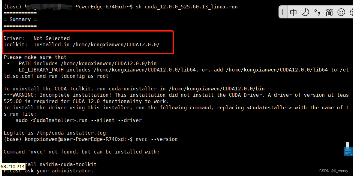 深度学习免不了需要CUDA加速,但是在诸多的CUDA安装教程中使用的都是sudo命令,服务器只有一个管理员,非管理员用户无法使用sudo命令,更新和安装CUDA通常会出现如下报错