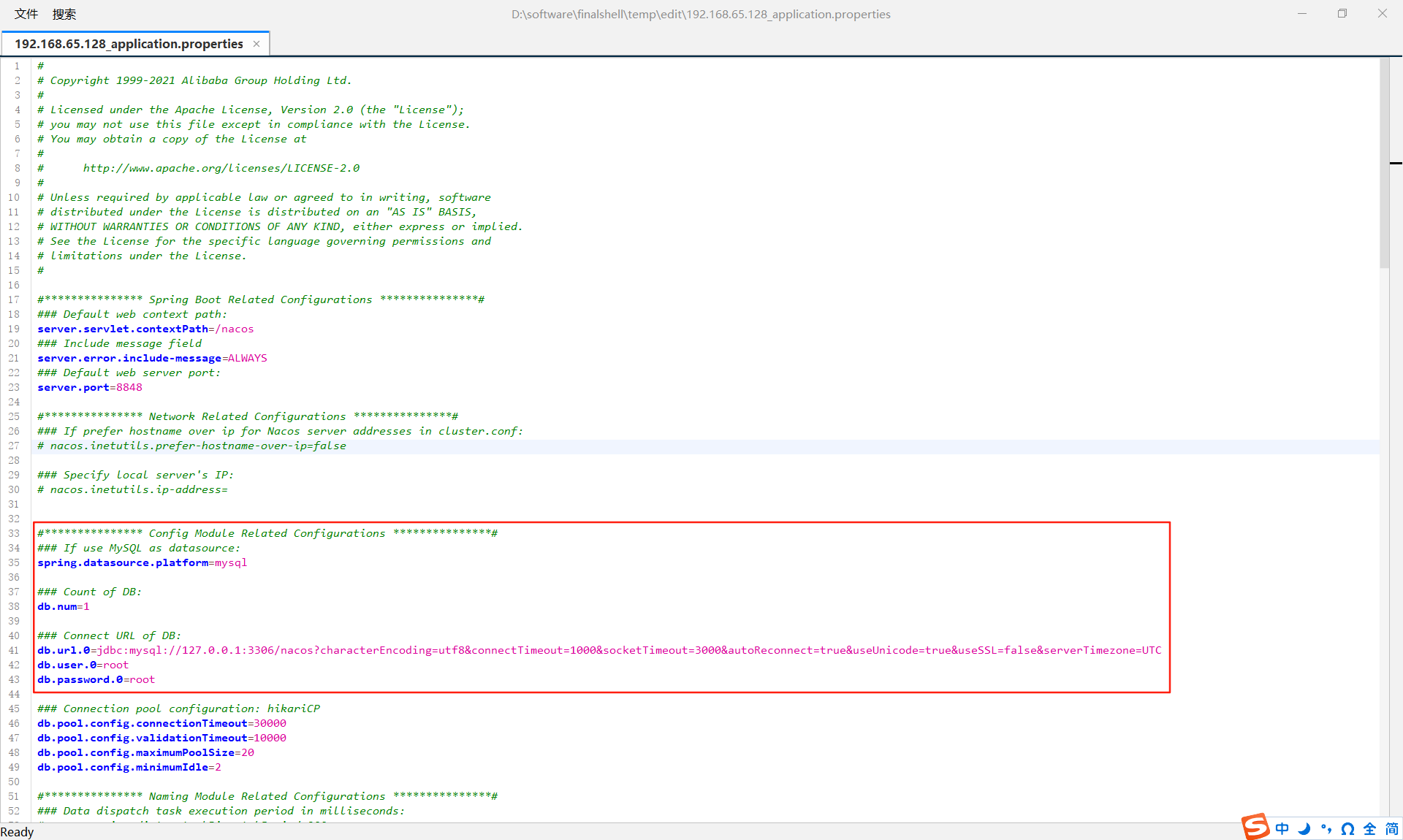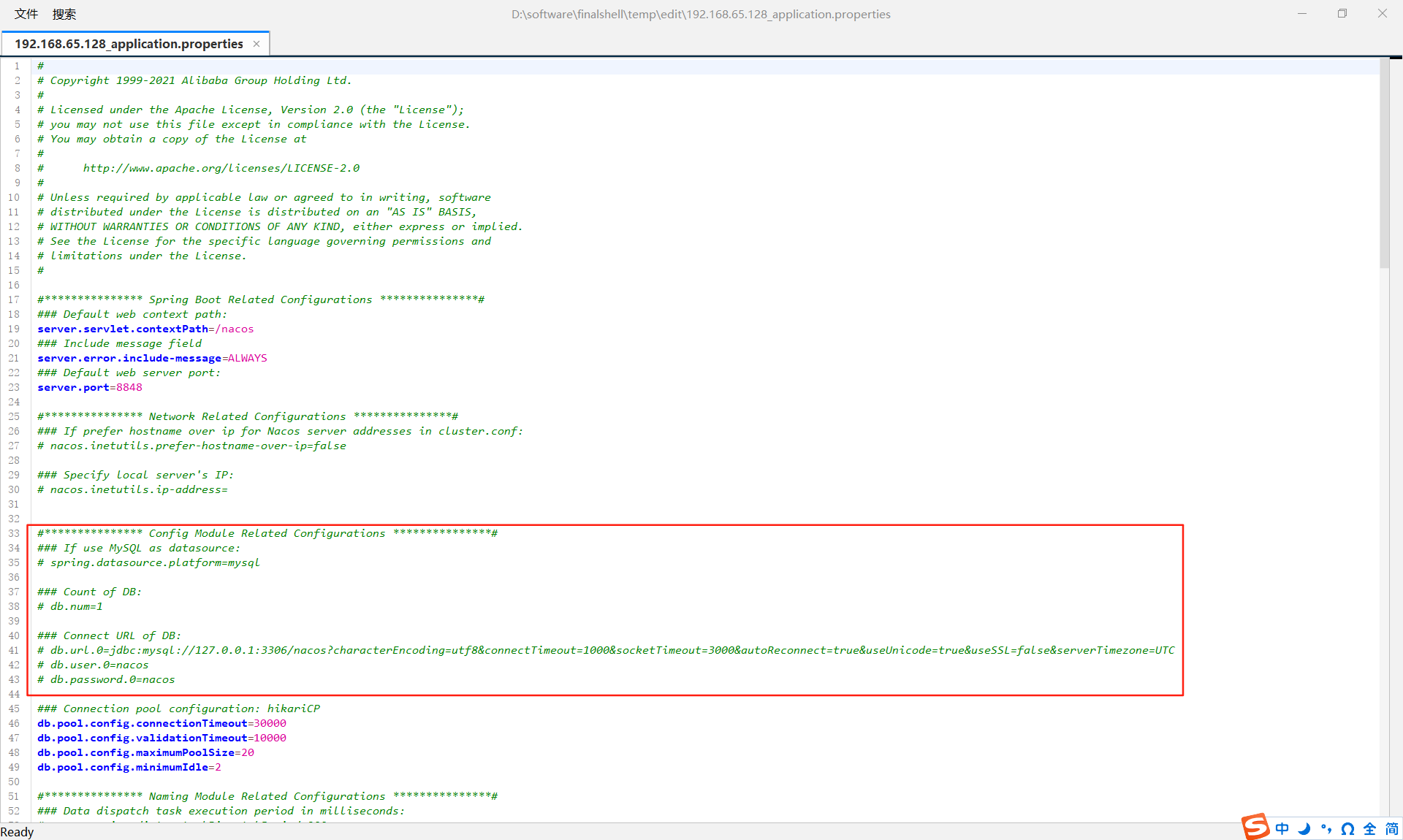 修改nacos安装目录下的配置文件:conf/application.properties