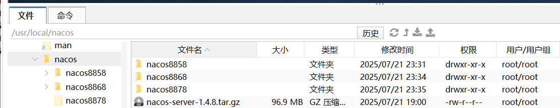 本文章在/usr/local目录下创建nacos目录保存安装的多个Nacos服务器。