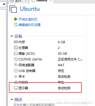注意,到这一步只是把 Ubuntu 的虚拟机创建好了,并不是把 Ubuntu 系统安装了,正式的安装需要启动虚拟机。