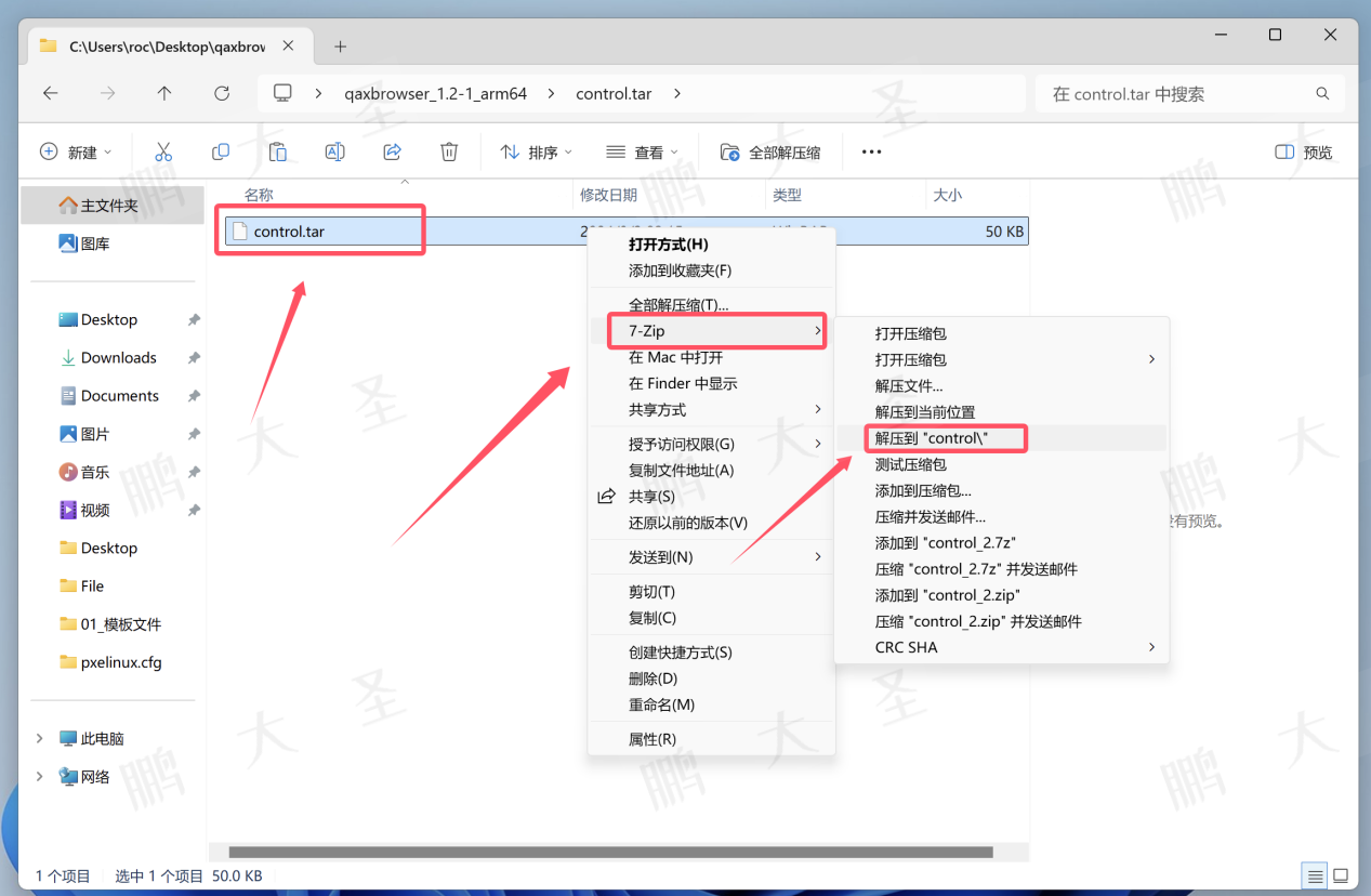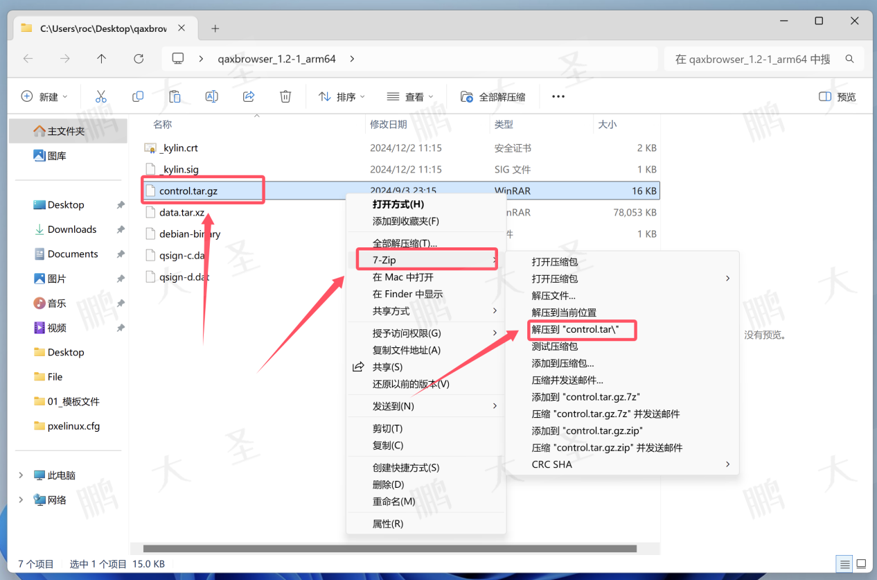 4.用7zip解压control.tar.gz文件