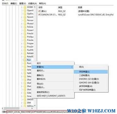 2、在注册表中找到如下位置HKEY_LOCAL_MACHINE\SOFTWARE\Microsoft\Windows\CurrentVersion\Run,winwin7.com右键“Run”新建一个字符串类型的键值。