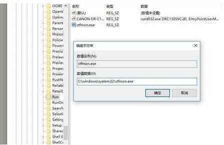 3、右键新建的键值,选择“修改”,将数值名称改为 你要启动的程序名称如:ctfmon.exe,数值数据改为 程序所在位置的路径 如:C:\windows\system32\ctfmon.exe (直接不能修改名字的,可以先点击重命名,改好名字,再点击修改,修改数值数据) Win10之家 www.w10zj.com