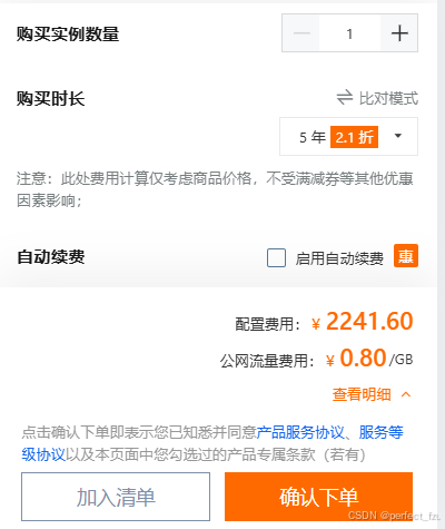 - 10. 下单:一般租用的服务器时间越长越优惠(有学生折扣),可根据需求购买。