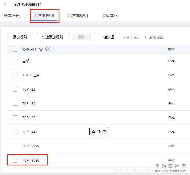 不只是Tomcat,大家都知道,redis,mysql等都有专属的端口,无法访问大多数情况下你是没有开启。那么怎么弄呢?很简单,去控制台安全组开启: