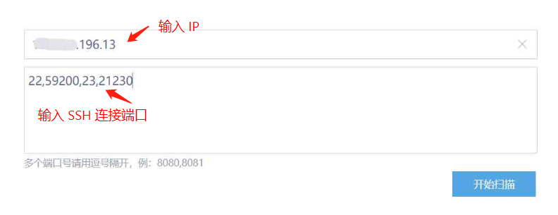 (2)点击开始扫描按钮后,会自动扫描填写的 SSH 连接端口国内是否开启。
